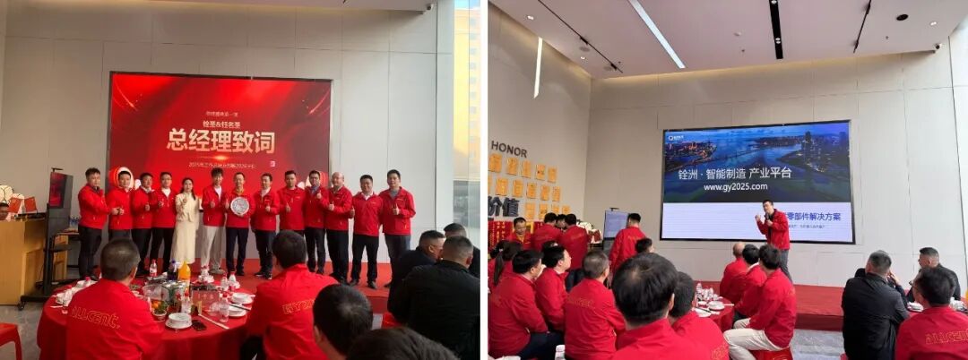铨圣科技总经理张霖/铨洲智造平台负责人奚进洲依次登台汇报。以详实的数据复盘了2025年的得失,以清晰的目标规划了2026年的路径。这不仅是一次工作的述职,更是一次物心双幸福的思想同频。
